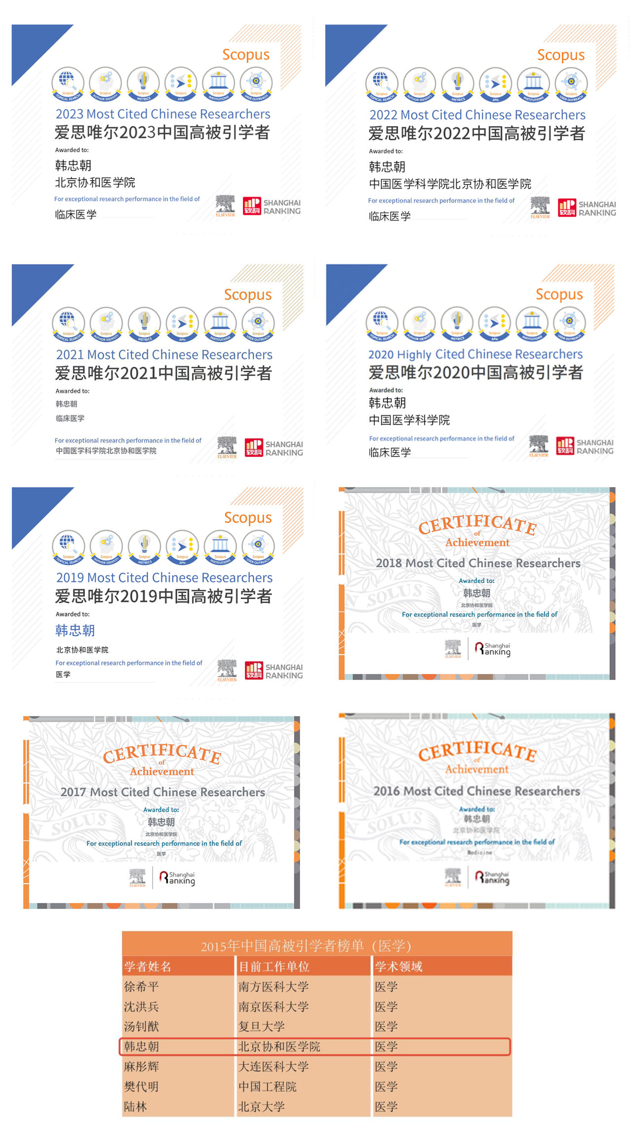 以下为往届证书: